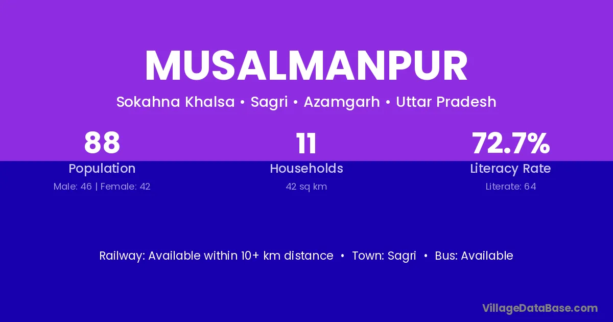 Musalmanpur village has a total population of 88 people, of which 46 are males and 42 are females.