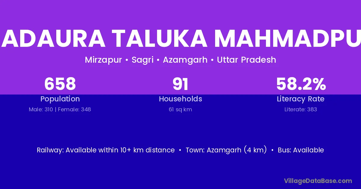Azamgarh (4 km) is the nearest town to Nadaura Taluka Mahmadpur village for major economic activities and is located approximately 4 km away.