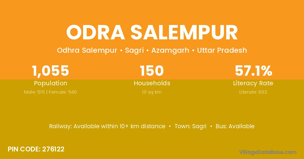 Odra Salempur village has a total population of 1,055 people, of which 515 are males and 540 are females.