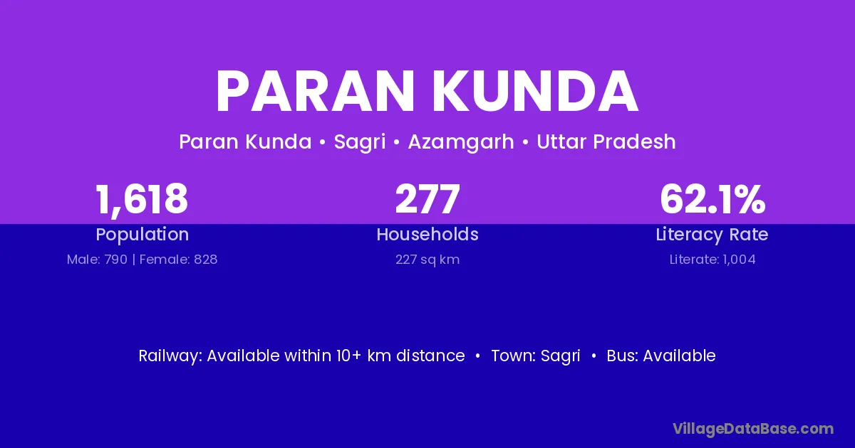 Paran Kunda village is located in the Sagri Tehsil of the Azamgarh district in Uttar Pradesh .