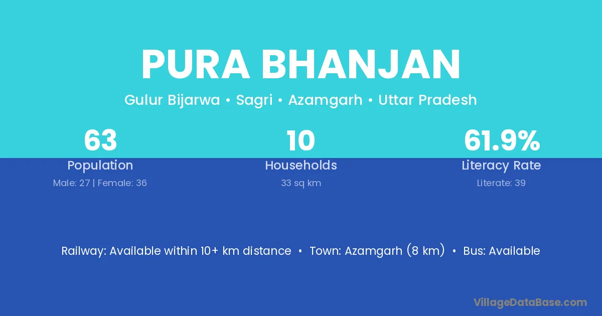 Azamgarh (8 km) is the nearest town to Pura Bhanjan village for major economic activities and is located approximately 8 km away.