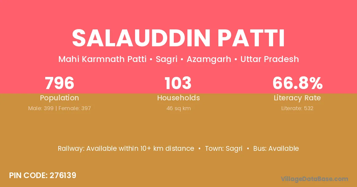 Salauddin Patti village has a total population of 796 people, of which 399 are males and 397 are females.