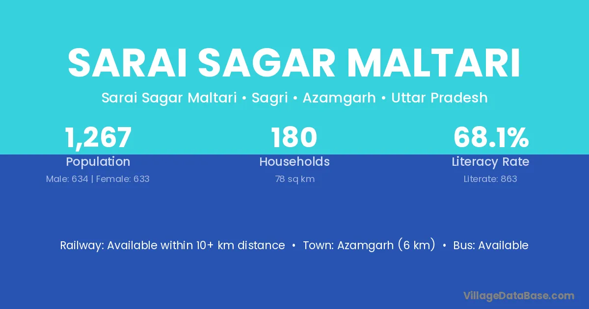 Sarai Sagar Maltari village has a total population of 1,267 people, of which 634 are males and 633 are females.