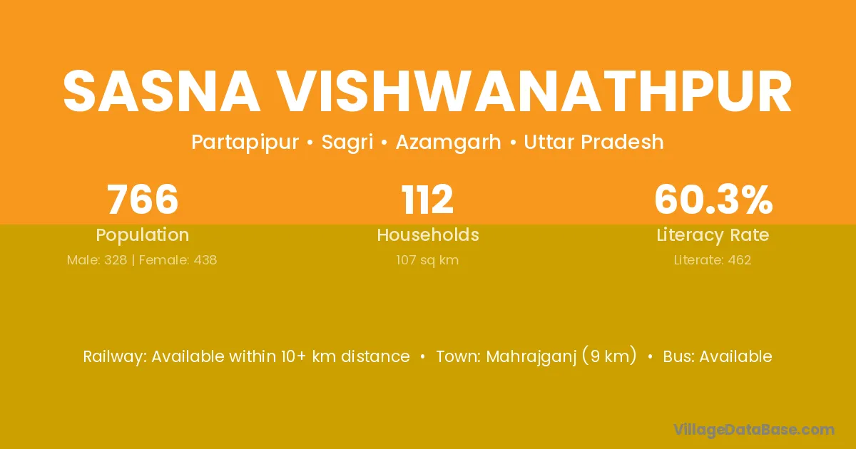 Sasna Vishwanathpur village has a total population of 766 people, of which 328 are males and 438 are females.