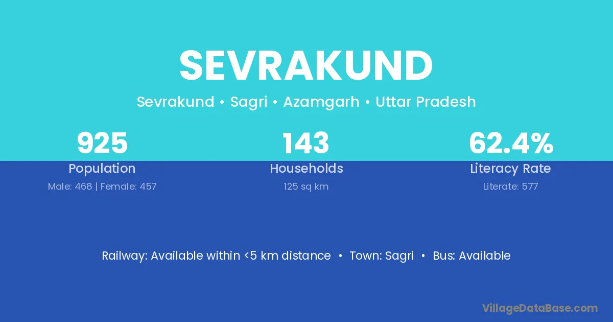 Sevrakund village has a total population of 925 people, of which 468 are males and 457 are females.