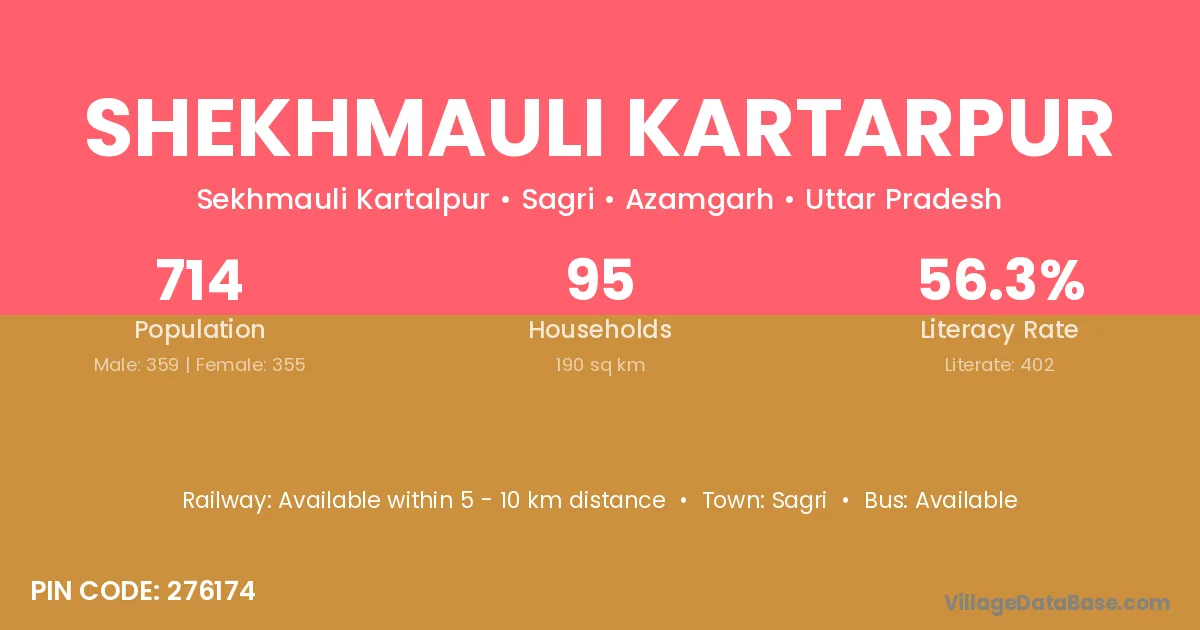 Shekhmauli Kartarpur village has a total population of 714 people, of which 359 are males and 355 are females.