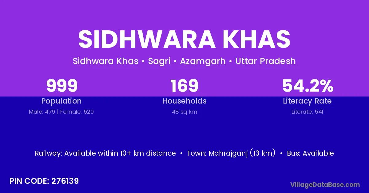 Mahrajganj (13 km) is the nearest town to Sidhwara Khas village for major economic activities and is located approximately 13 km away.