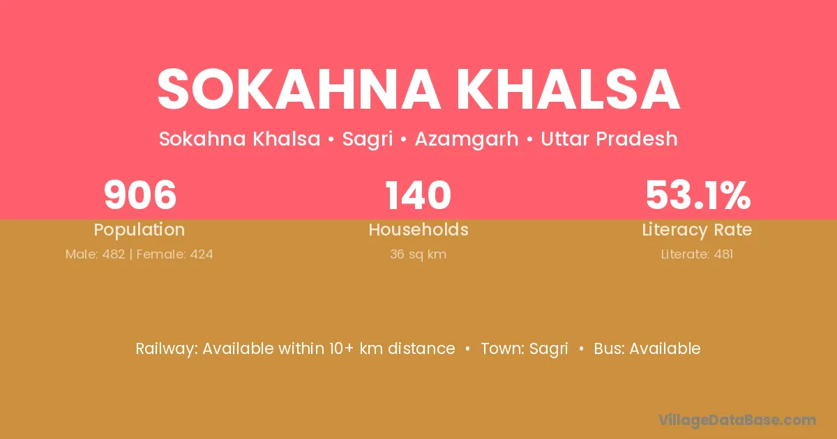 Sokahna Khalsa village is located in the Sagri Tehsil of the Azamgarh district in Uttar Pradesh .