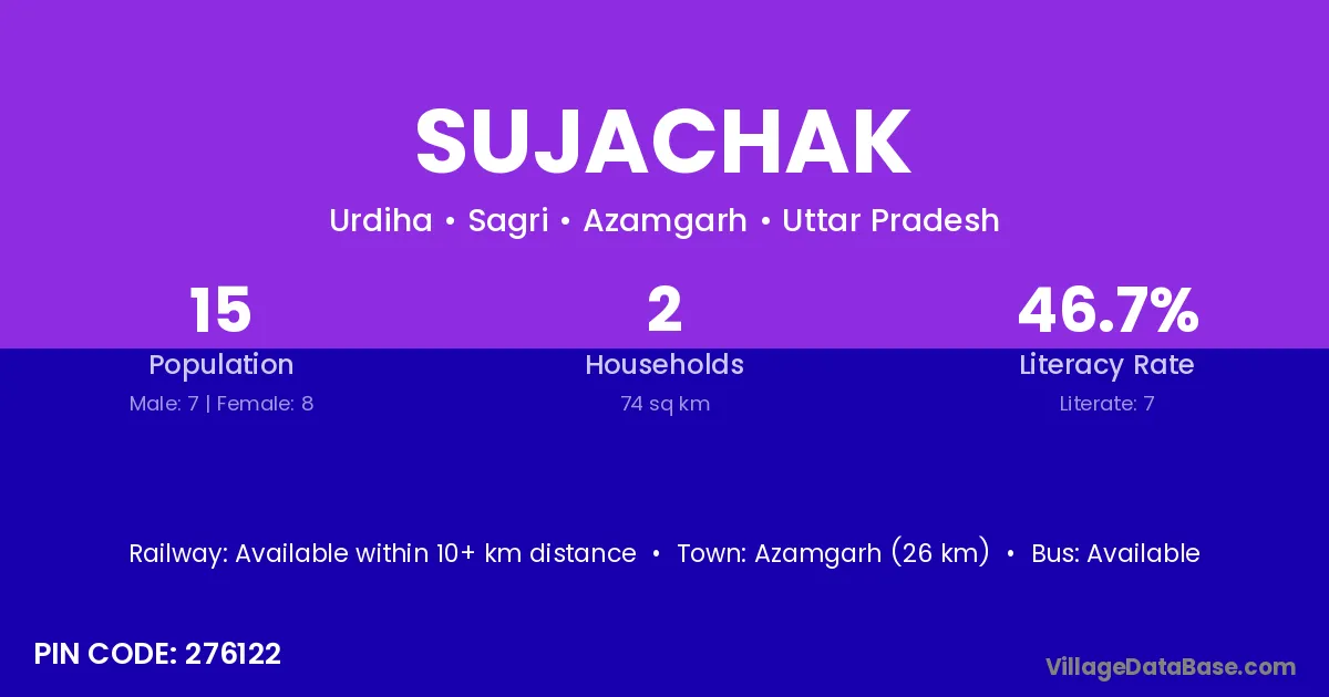 Azamgarh (26 km) is the nearest town to Sujachak village for major economic activities and is located approximately 26 km away.