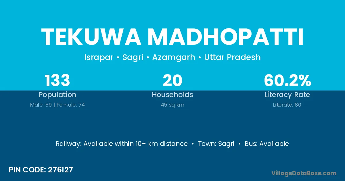 Sagri is the nearest town to Tekuwa Madhopatti village for major economic activities
