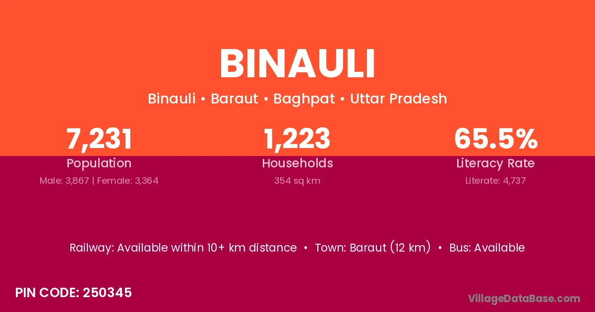 Baraut (12 km) is the nearest town to Binauli village for major economic activities and is located approximately 12 km away.