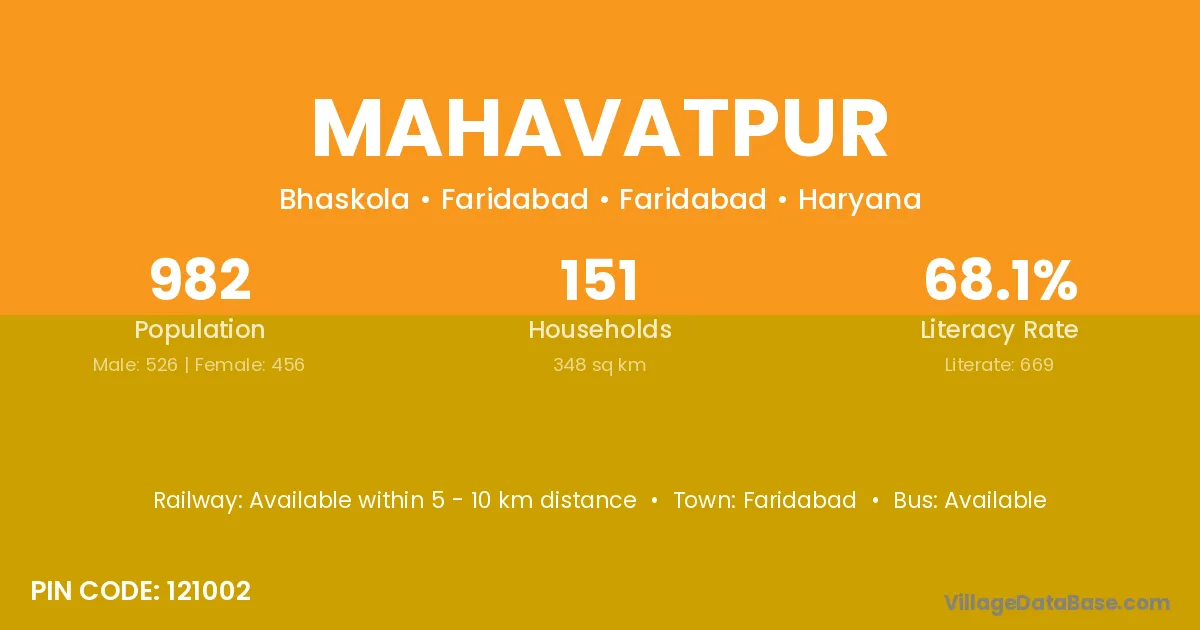 Mahavatpur village has a total population of 5,872 people, of which 3,238 are males and 2,634 are females.