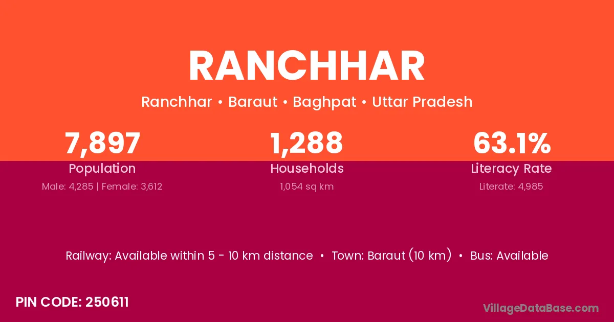 Baraut (10 km) is the nearest town to Ranchhar village for major economic activities and is located approximately 10 km away.