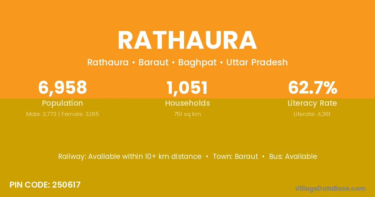 Rathaura village has a total population of 6,958 people, of which 3,773 are males and 3,185 are females.