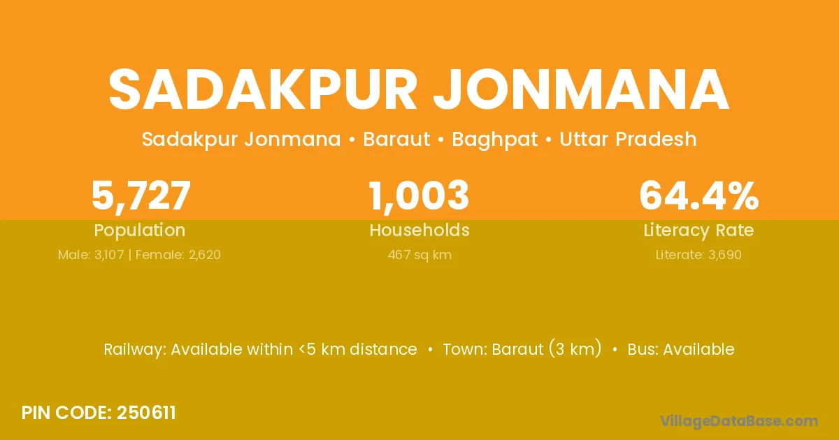 Baraut (3 km) is the nearest town to Sadakpur Jonmana village for major economic activities and is located approximately 3 km away.