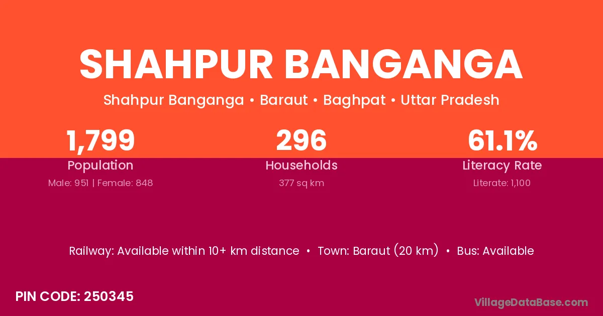 Baraut (20 km) is the nearest town to Shahpur Banganga village for major economic activities and is located approximately 20 km away.