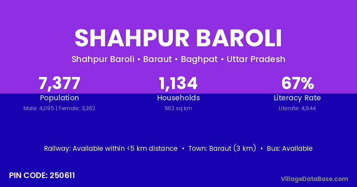 Baraut (3 km) is the nearest town to Shahpur Baroli village for major economic activities and is located approximately 3 km away.