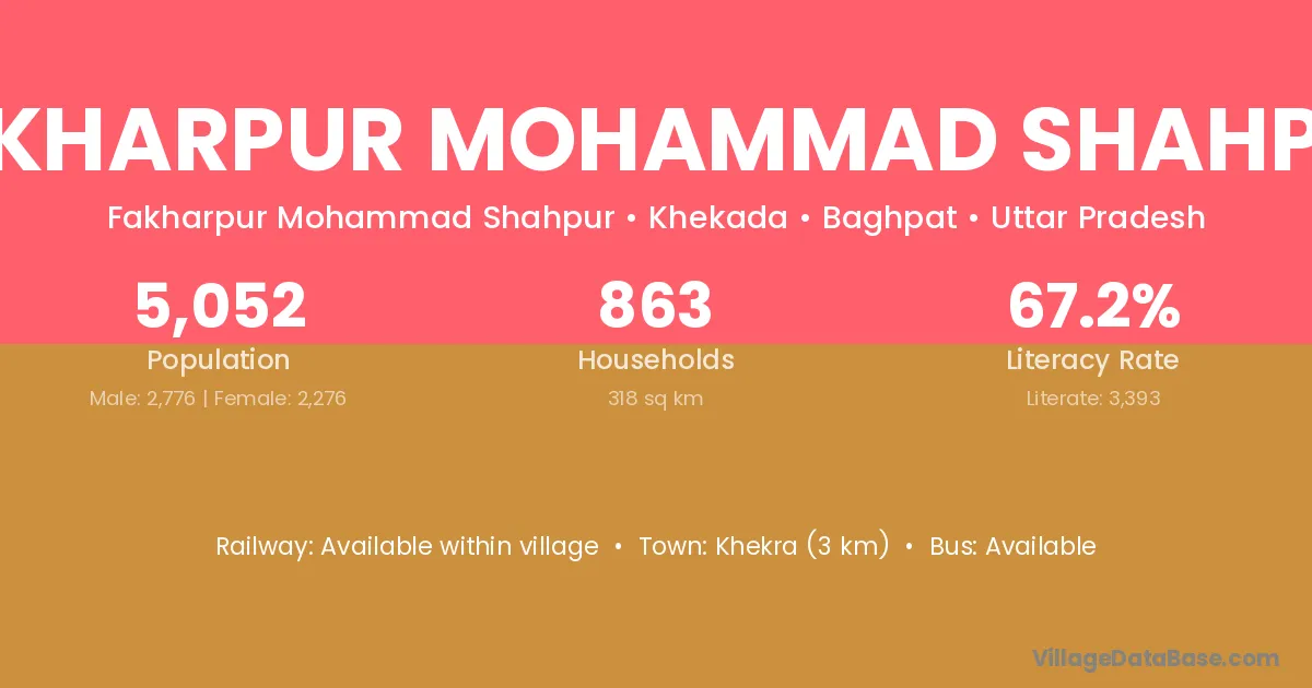 Khekra (3 km) is the nearest town to Fakharpur Mohammad Shahpur village for major economic activities and is located approximately 3 km away.