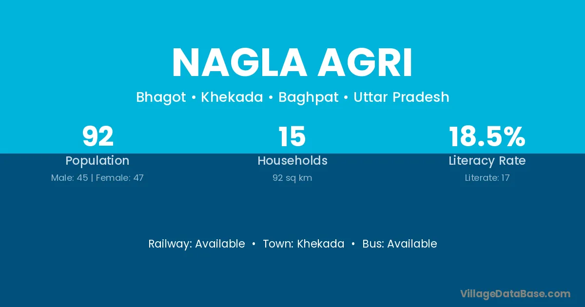 Nagla Agri village has a total population of 92 people, of which 45 are males and 47 are females.