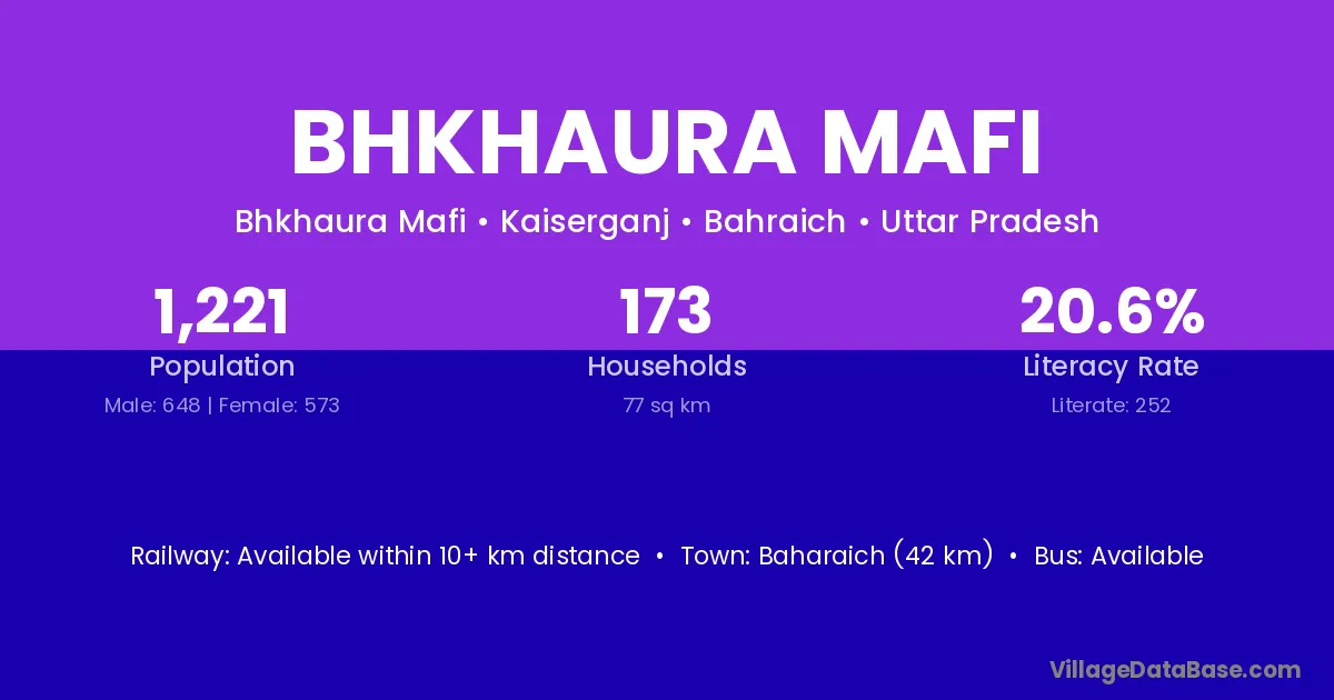 Baharaich (42 km) is the nearest town to Bhkhaura Mafi village for major economic activities and is located approximately 42 km away.