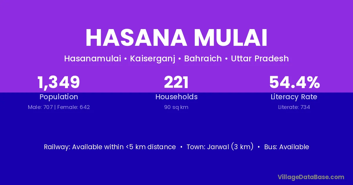 Jarwal (3 km) is the nearest town to Hasana Mulai village for major economic activities and is located approximately 3 km away.