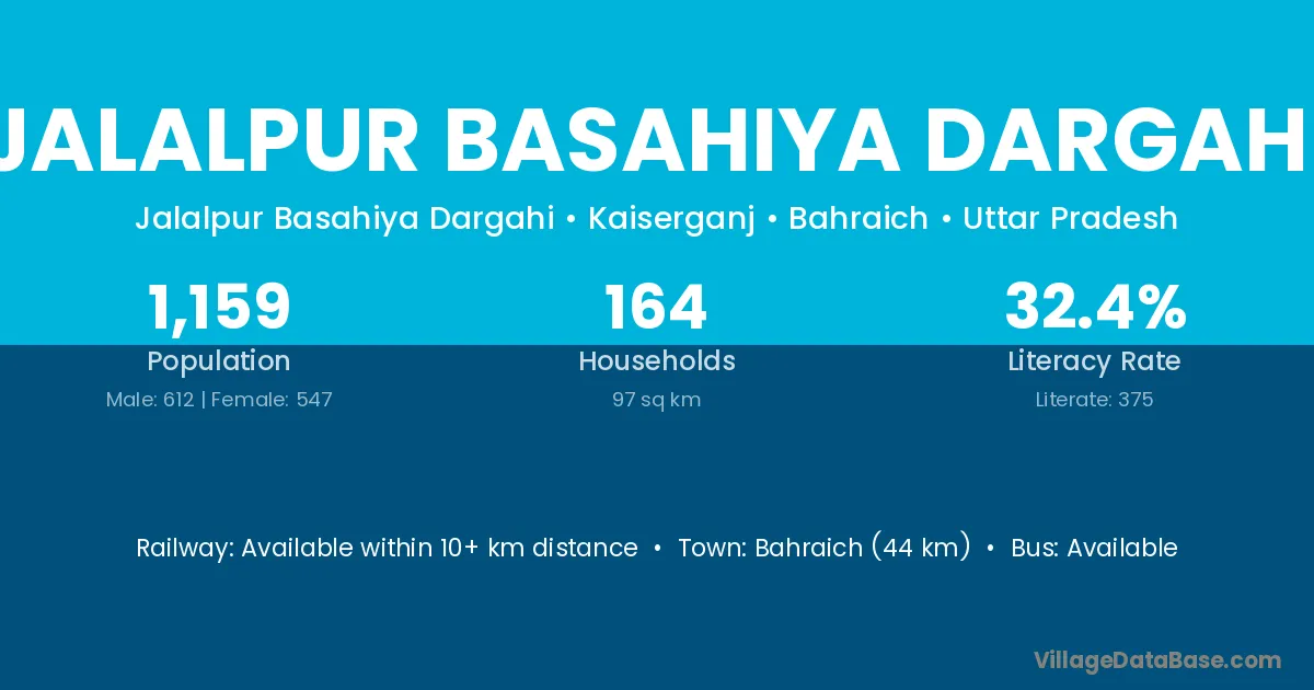 Bahraich (44 km) is the nearest town to Jalalpur Basahiya Dargahi village for major economic activities and is located approximately 44 km away.