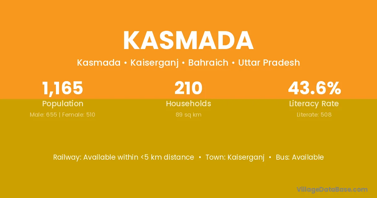 Kaiserganj is the nearest town to Kasmada village for major economic activities