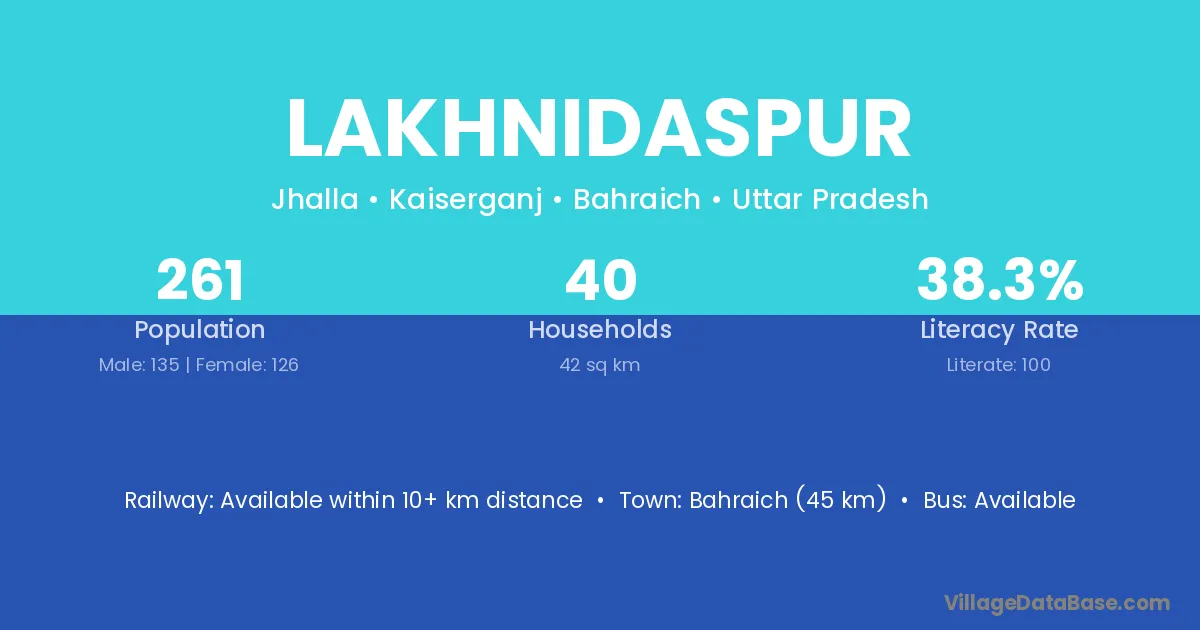Bahraich (45 km) is the nearest town to Lakhnidaspur village for major economic activities and is located approximately 45 km away.