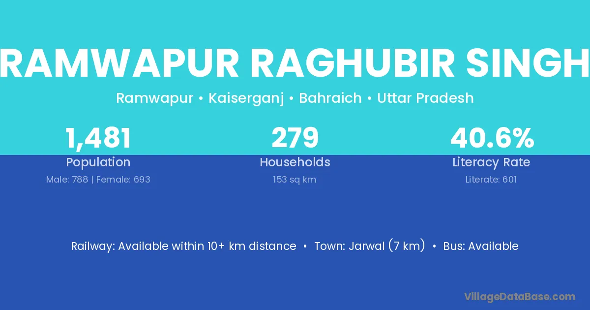 Ramwapur Raghubir Singh village has a total population of 1,481 people, of which 788 are males and 693 are females.