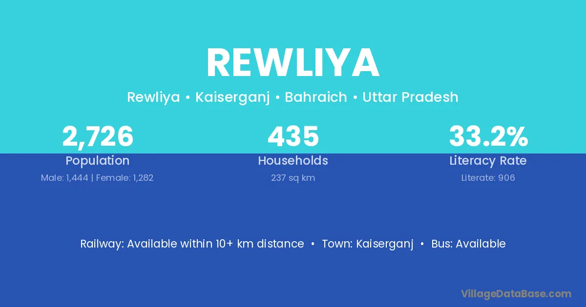Kaiserganj is the nearest town to Rewliya village for major economic activities