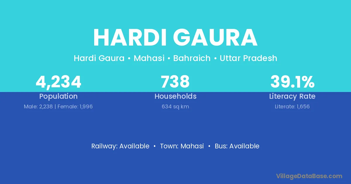 There are approximately 738 households in Hardi Gaura village.