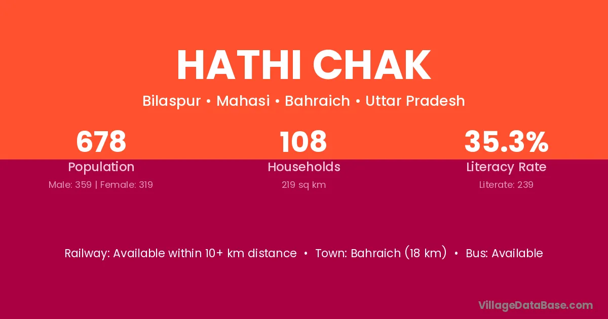 Bahraich (18 km) is the nearest town to Hathi Chak village for major economic activities and is located approximately 18 km away.