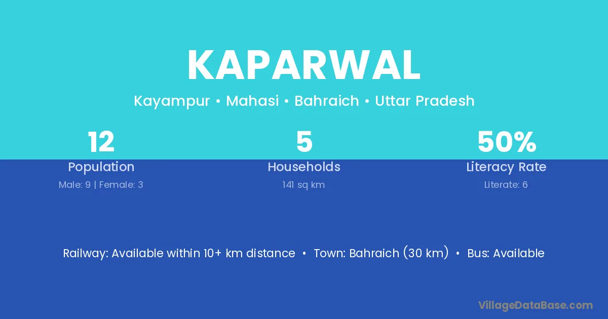 Bahraich (30 km) is the nearest town to Kaparwal village for major economic activities and is located approximately 30 km away.