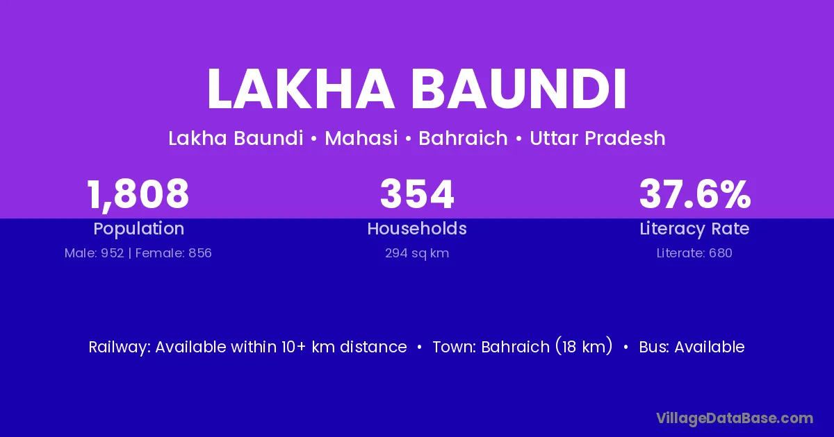 Bahraich (18 km) is the nearest town to Lakha Baundi village for major economic activities and is located approximately 18 km away.