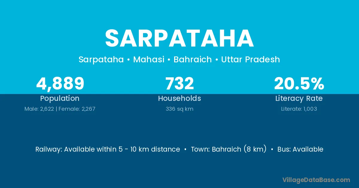 Bahraich (8 km) is the nearest town to Sarpataha village for major economic activities and is located approximately 8 km away.