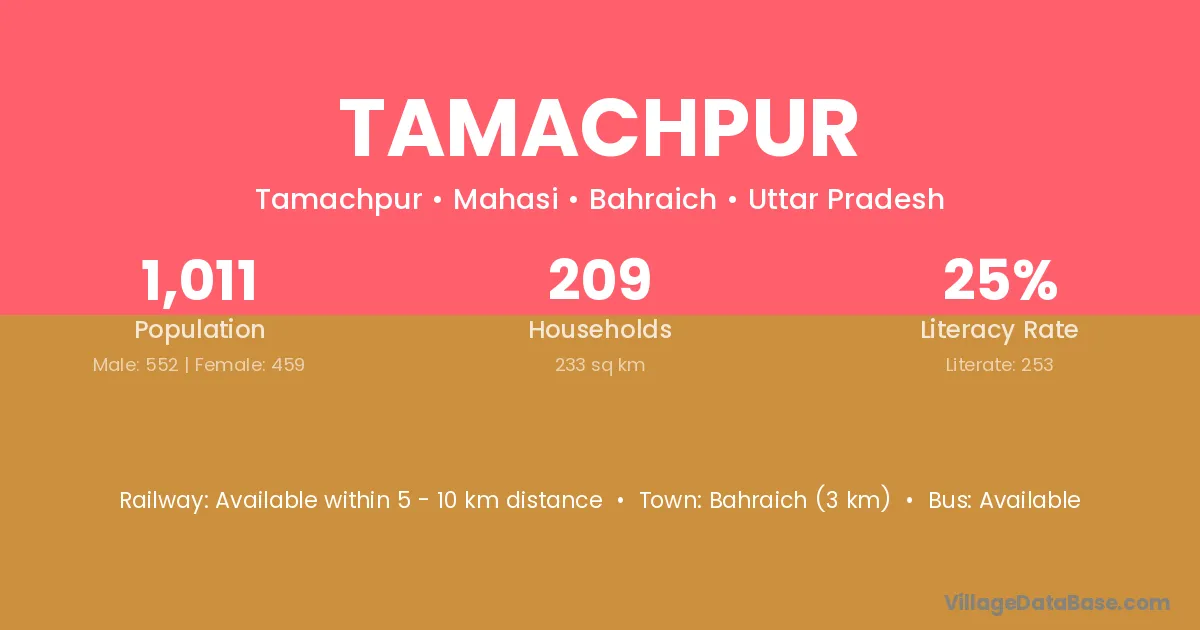 Bahraich (3 km) is the nearest town to Tamachpur village for major economic activities and is located approximately 3 km away.