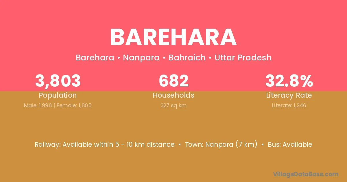 Nanpara (7 km) is the nearest town to Barehara village for major economic activities and is located approximately 7 km away.