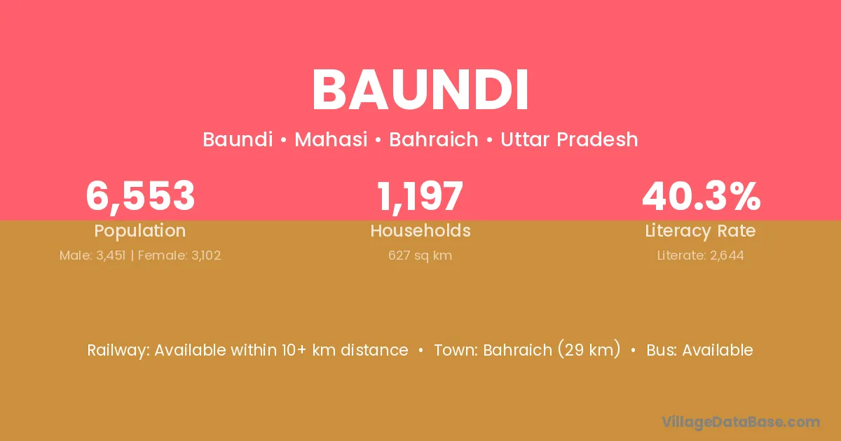 Nanpara (17 km) is the nearest town to Baundi village for major economic activities and is located approximately 17 km away.