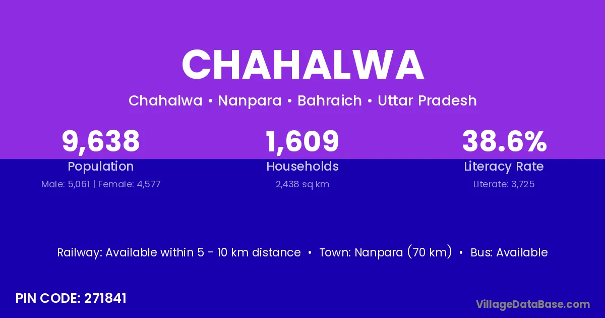 Nanpara (70 km) is the nearest town to Chahalwa village for major economic activities and is located approximately 70 km away.