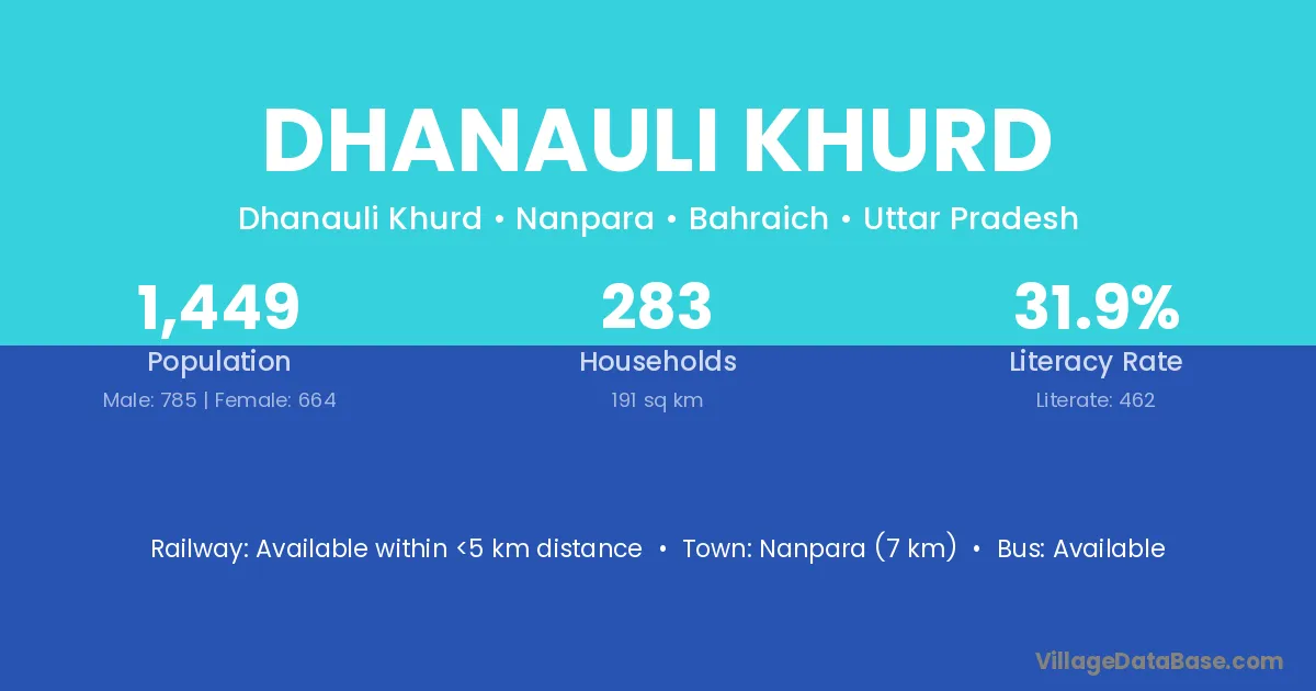 Nanpara (7 km) is the nearest town to Dhanauli Khurd village for major economic activities and is located approximately 7 km away.