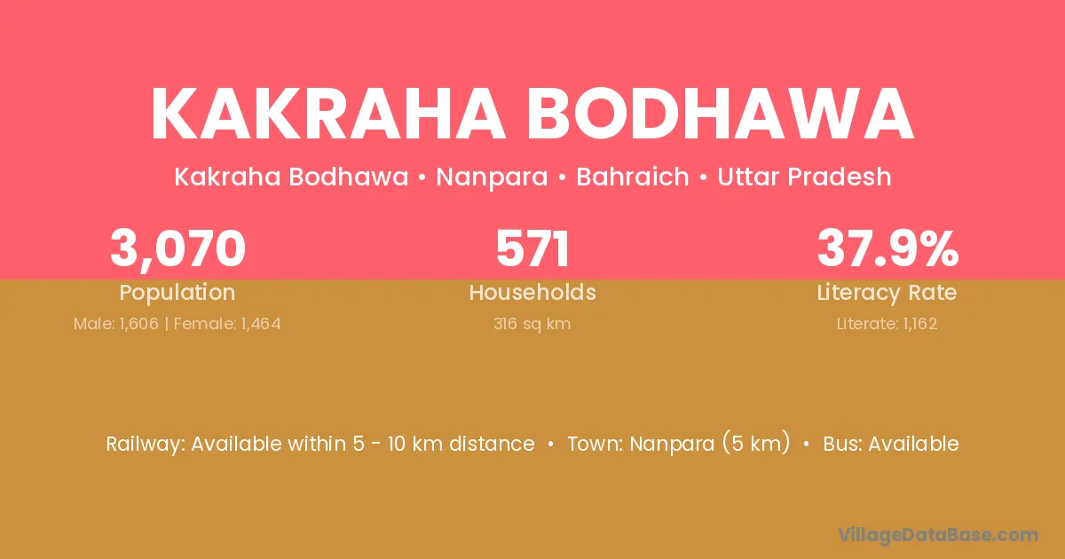 Nanpara (5 km) is the nearest town to Kakraha Bodhawa village for major economic activities and is located approximately 5 km away.