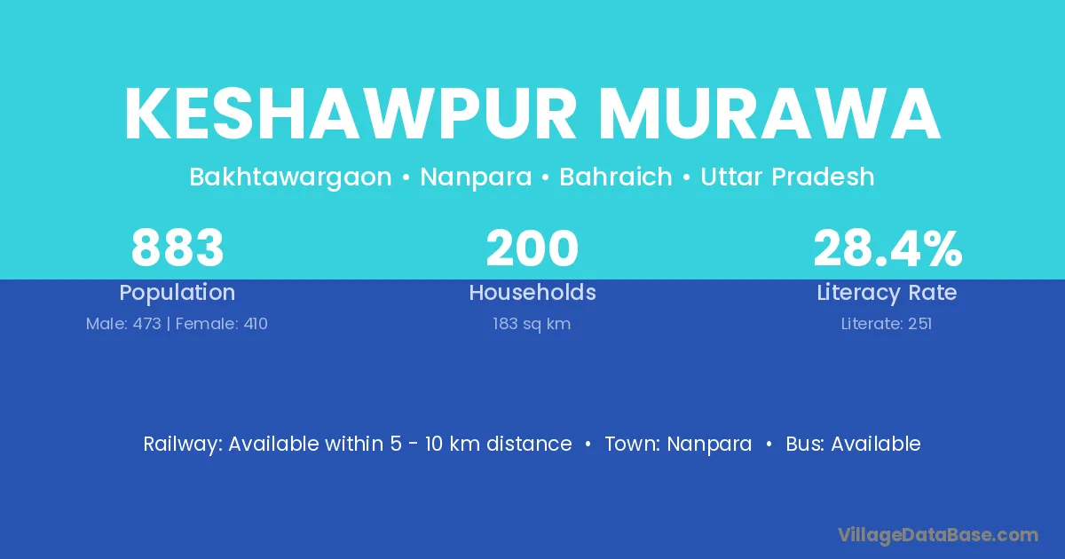 Keshawpur Murawa village has a total population of 883 people, of which 473 are males and 410 are females.