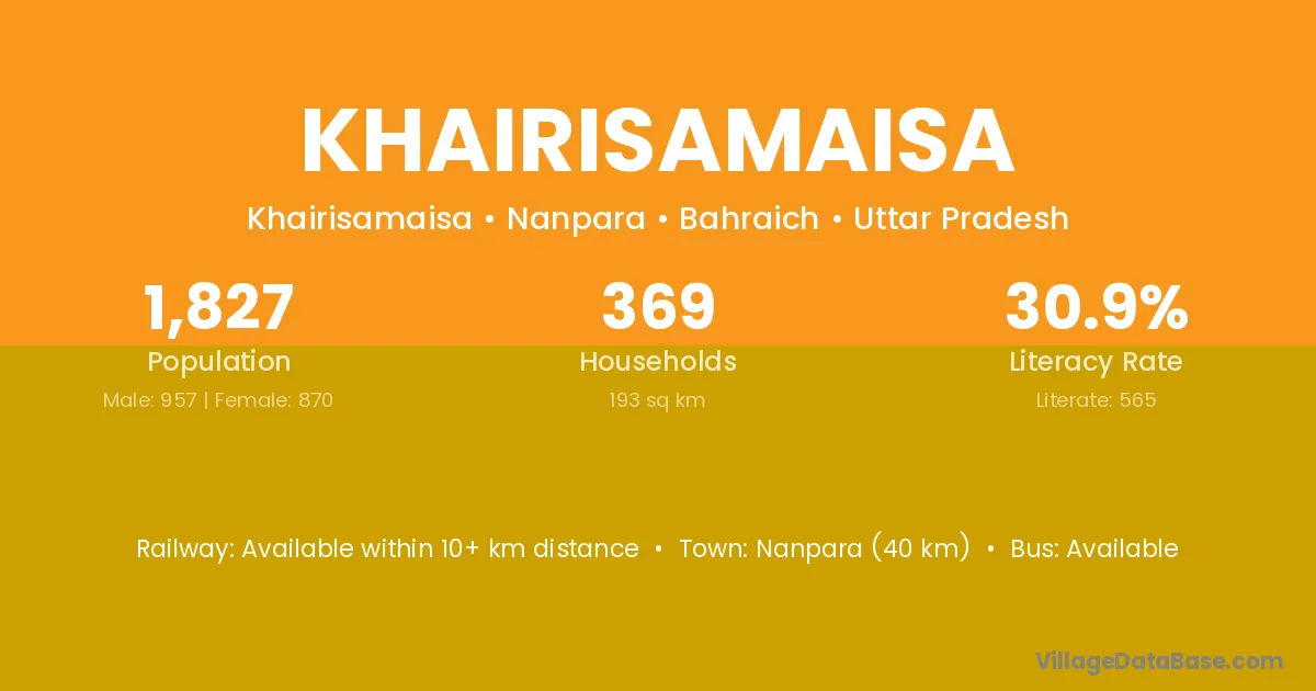 Nanpara (40 km) is the nearest town to Khairisamaisa village for major economic activities and is located approximately 40 km away.