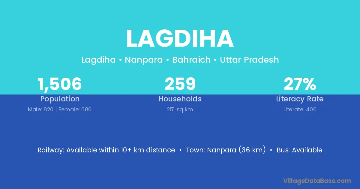 Nanpara (36 km) is the nearest town to Lagdiha village for major economic activities and is located approximately 36 km away.