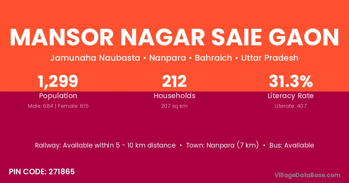 Nanpara (7 km) is the nearest town to Mansor Nagar Saie Gaon village for major economic activities and is located approximately 7 km away.