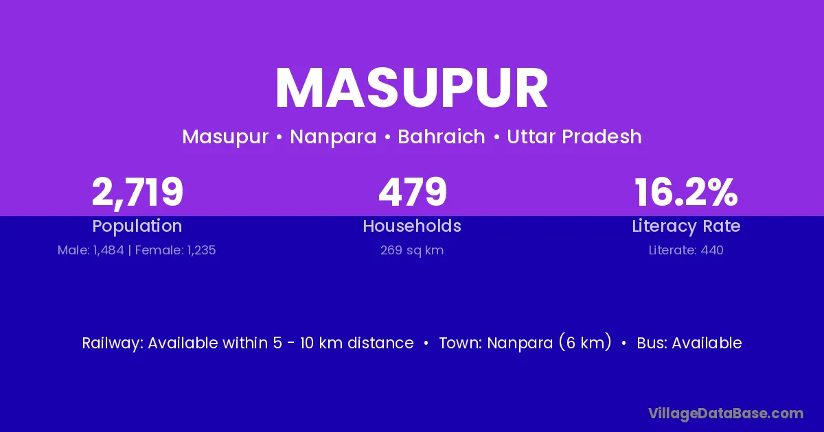 Nanpara (6 km) is the nearest town to Masupur village for major economic activities and is located approximately 6 km away.