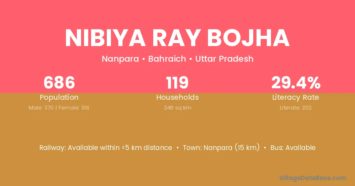 Nanpara (15 km) is the nearest town to Nibiya Ray Bojha village for major economic activities and is located approximately 15 km away.