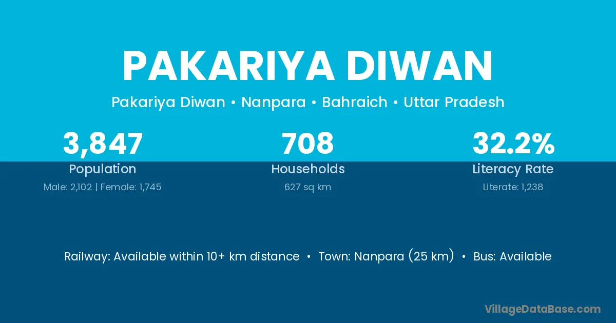 Nanpara (25 km) is the nearest town to Pakariya Diwan village for major economic activities and is located approximately 25 km away.
