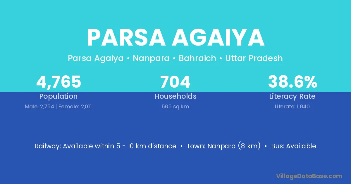 Nanpara (8 km) is the nearest town to Parsa Agaiya village for major economic activities and is located approximately 8 km away.