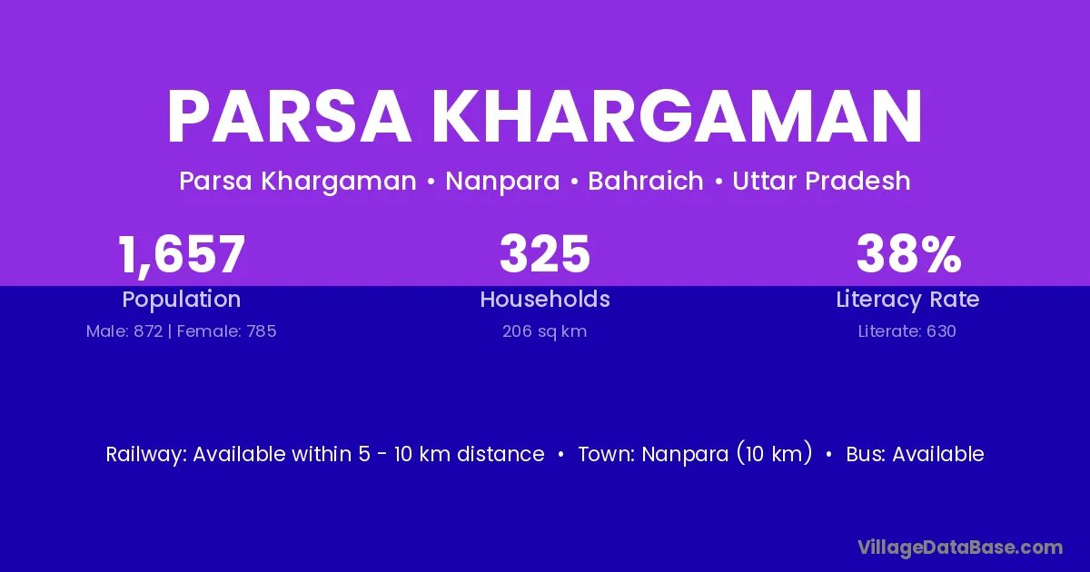 Nanpara (10 km) is the nearest town to Parsa Khargaman village for major economic activities and is located approximately 10 km away.